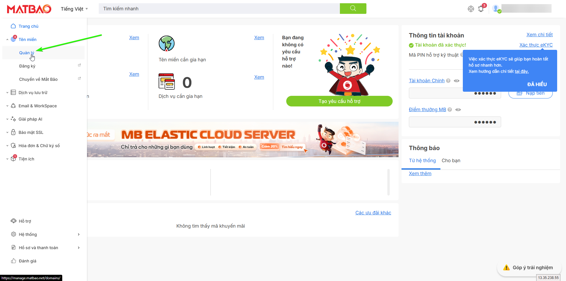 Đầu tên, bạn đăng nhập trang https://id.matbao.net/ với tài khoản MBxxxxx