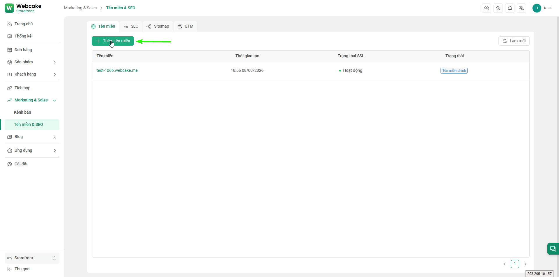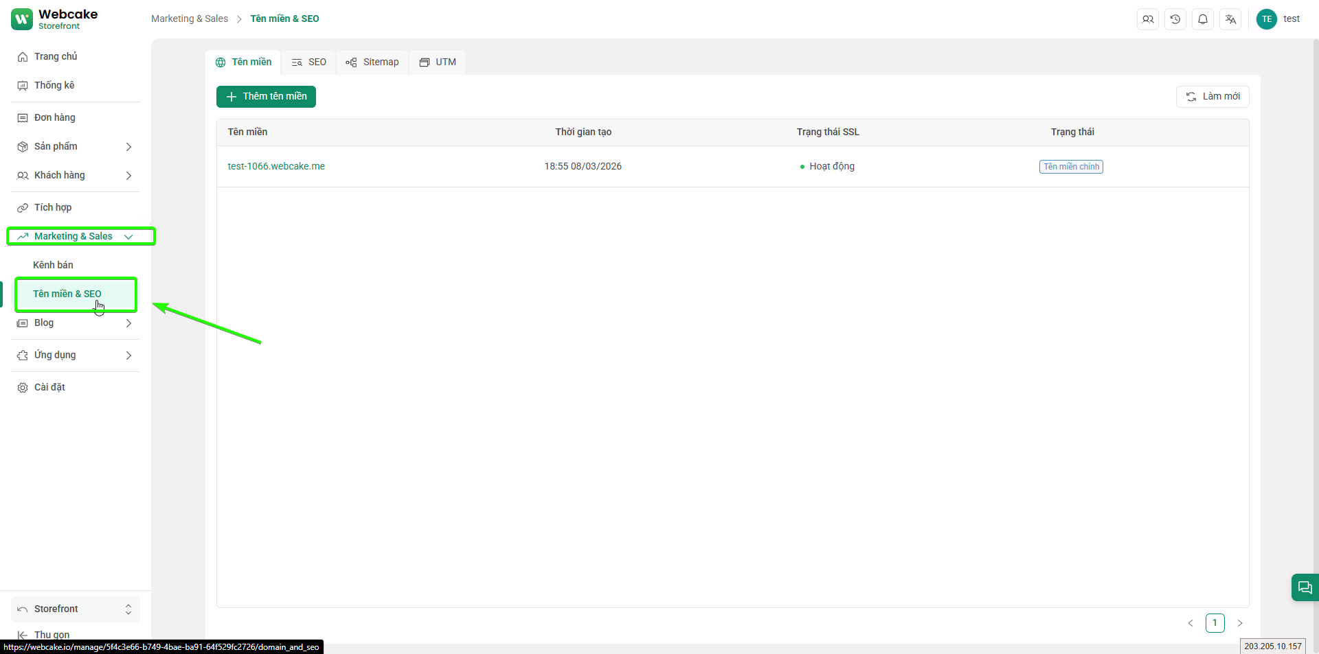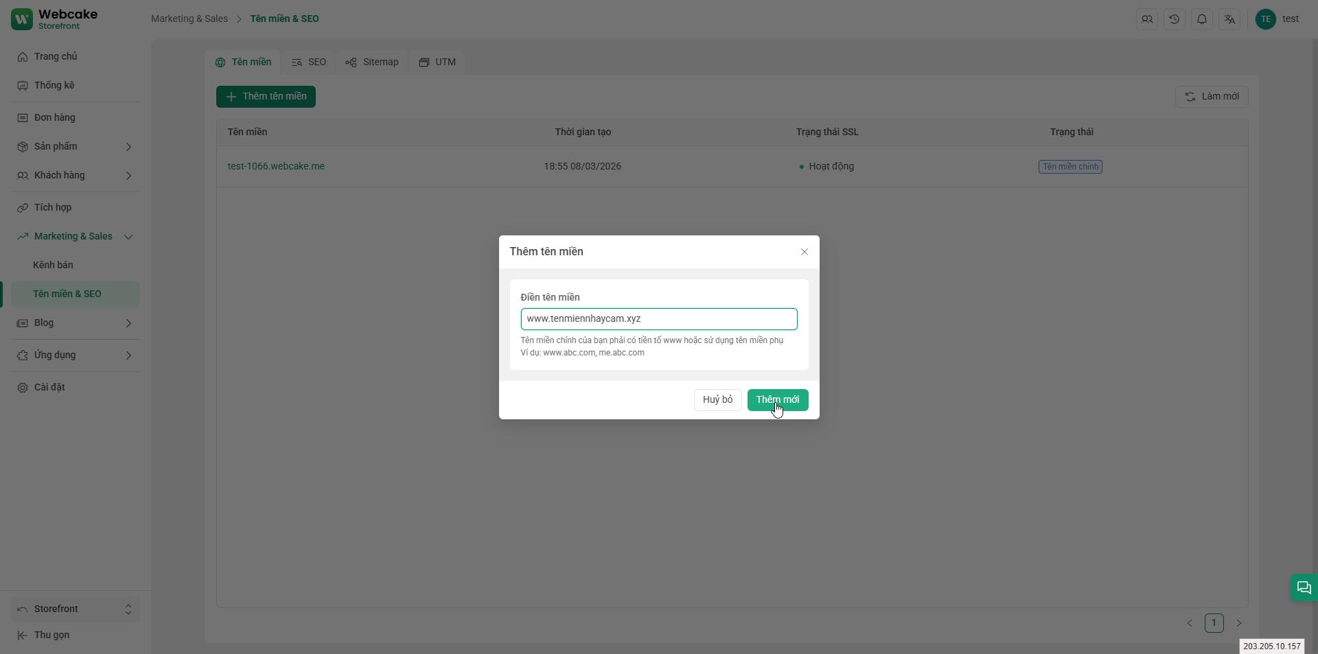 Mở tab mới truy cập trang webcake.io để tiến hành cấu hình add tên miền để kết nối với webcake