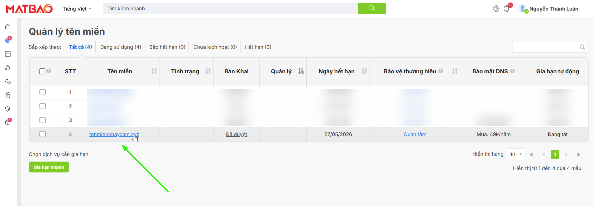 Tiếp theo, bạn vào mục Tên miền  > chọn Quản lý  > click vào dịch vụ tên miền bạn cần cấu hình > chọn Sửa giao diện
