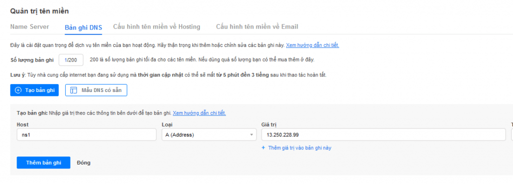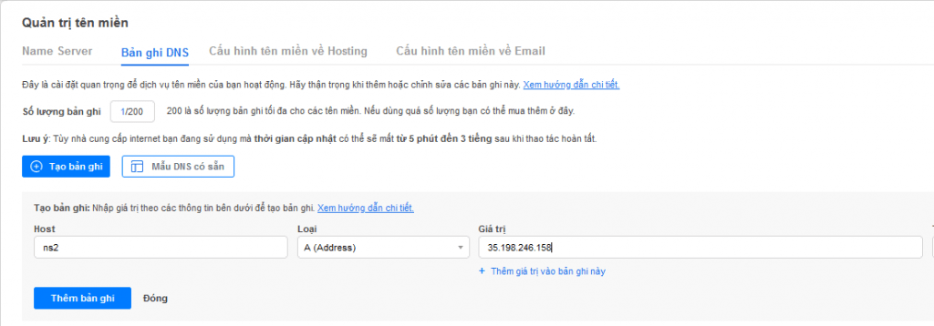 – Sử dụng giá trị DNS có dạng ns1-ns2, ns3-ns4, ns5-ns6 bắt buộc phải có kí tự “NS“.