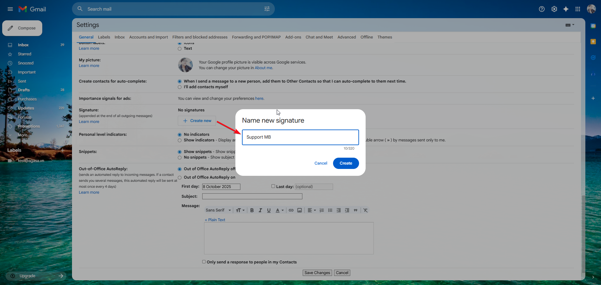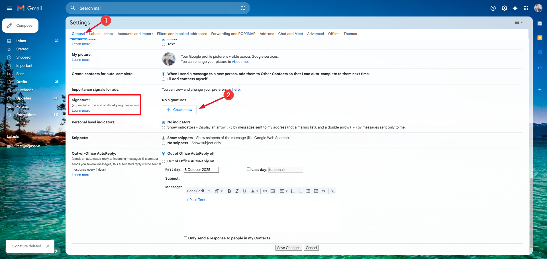 Ngay tab General, bạn hãy tìm mục Signature và chọn vào mục + Create New