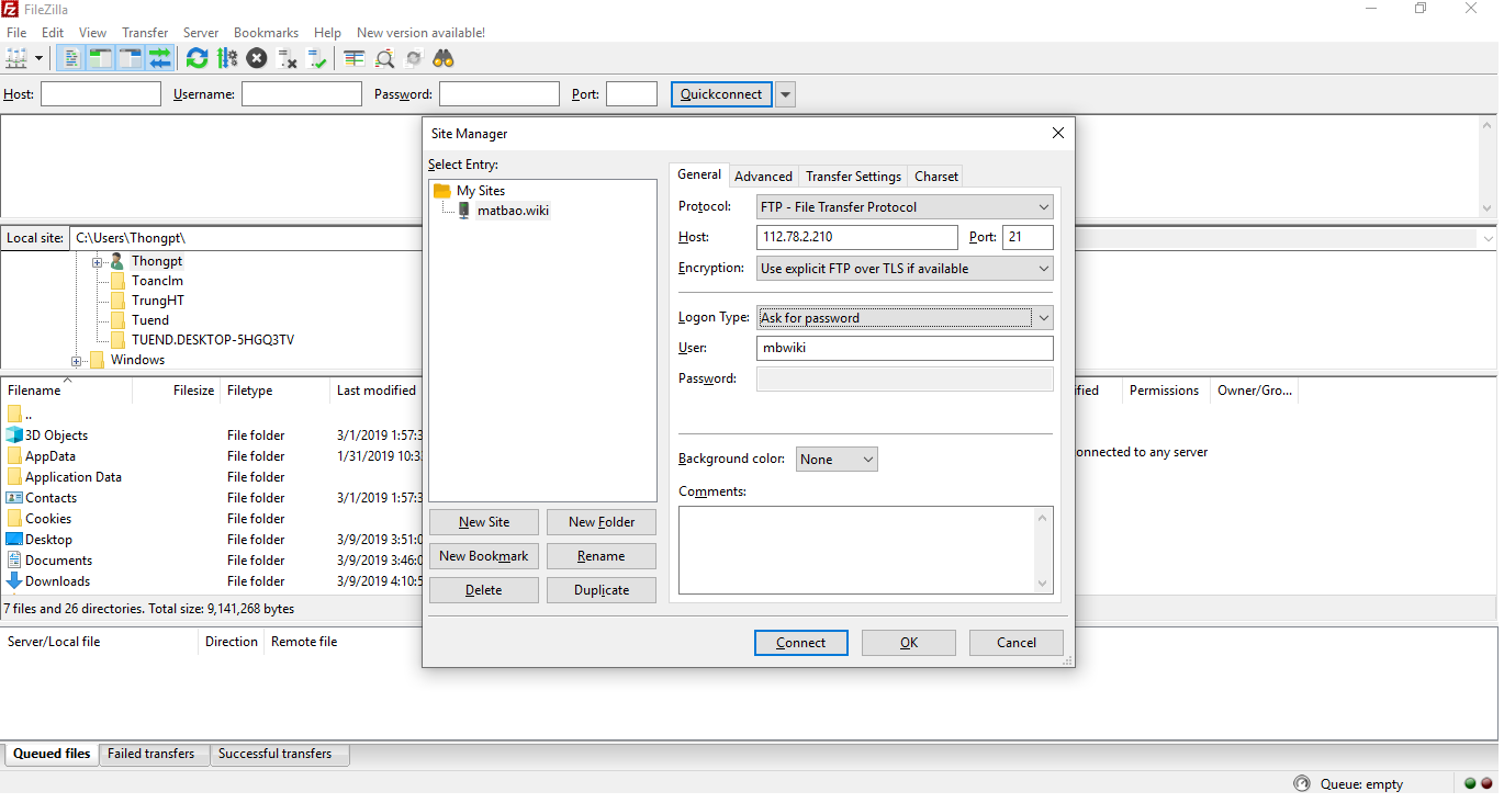 Sau cùng chọn connect và điền mật khẩu để kết nối FTP!