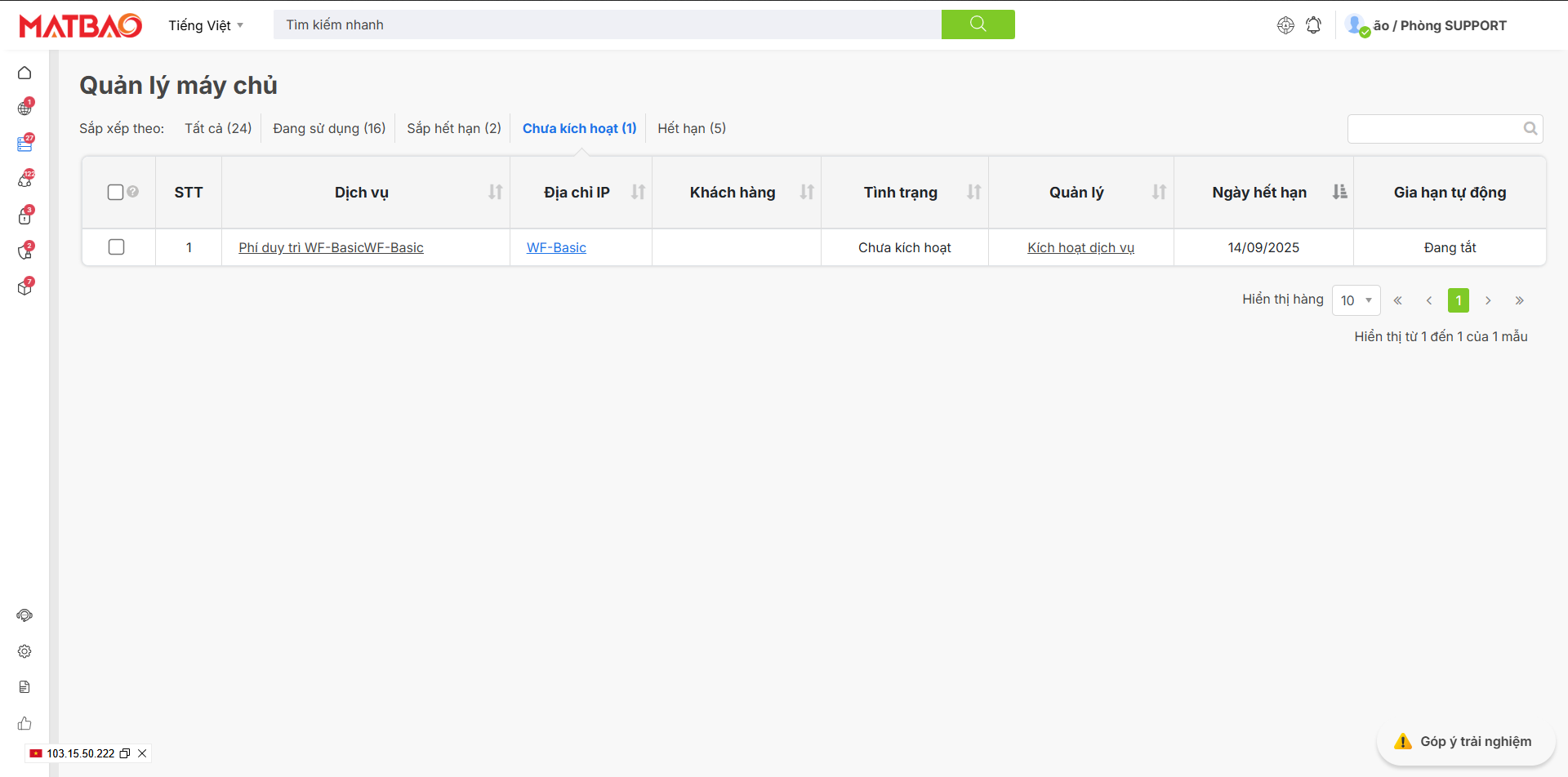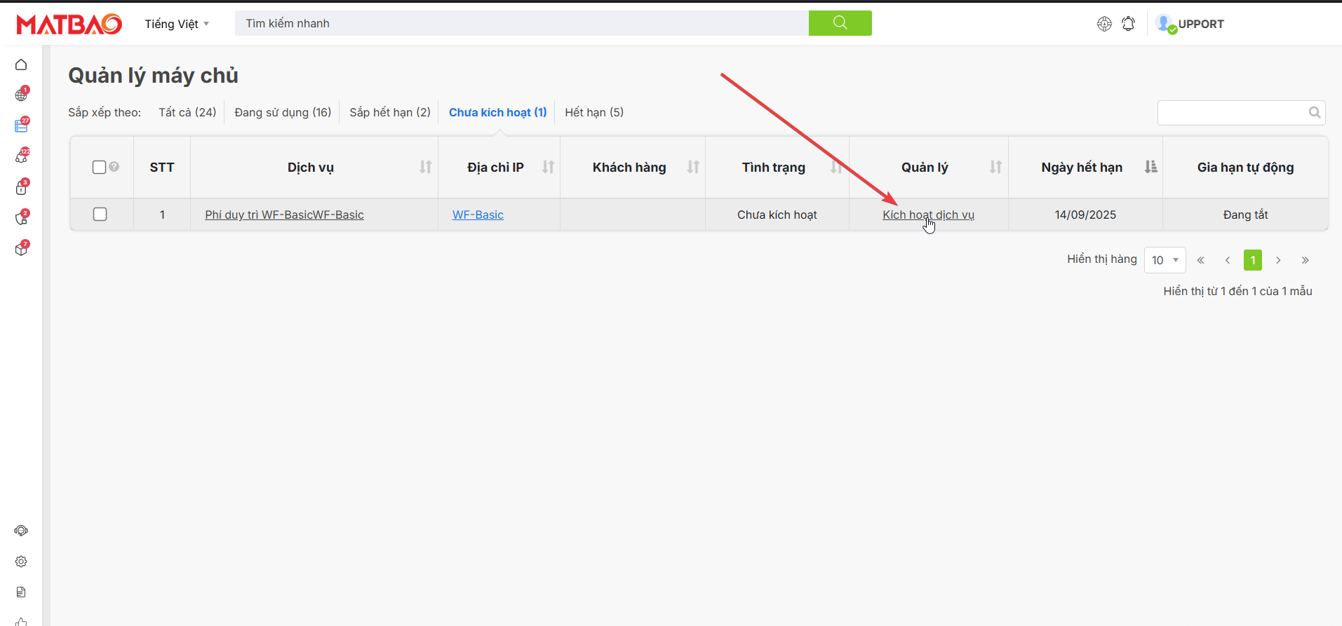 Truy cập vào trang quản lý dịch vụ Cloud Server : mục dịch vụ Chưa kích hoạt