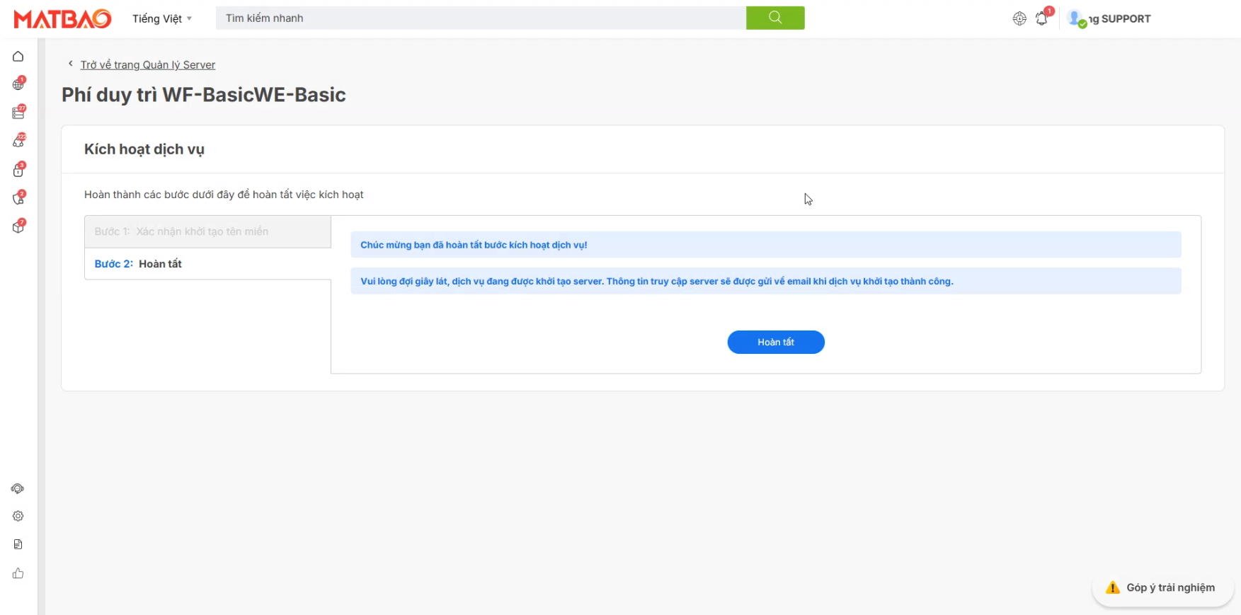 Sau khi hoàn tất, bạn chờ vài phút , thông tin sẽ được gửi về email quản trị dịch vụ