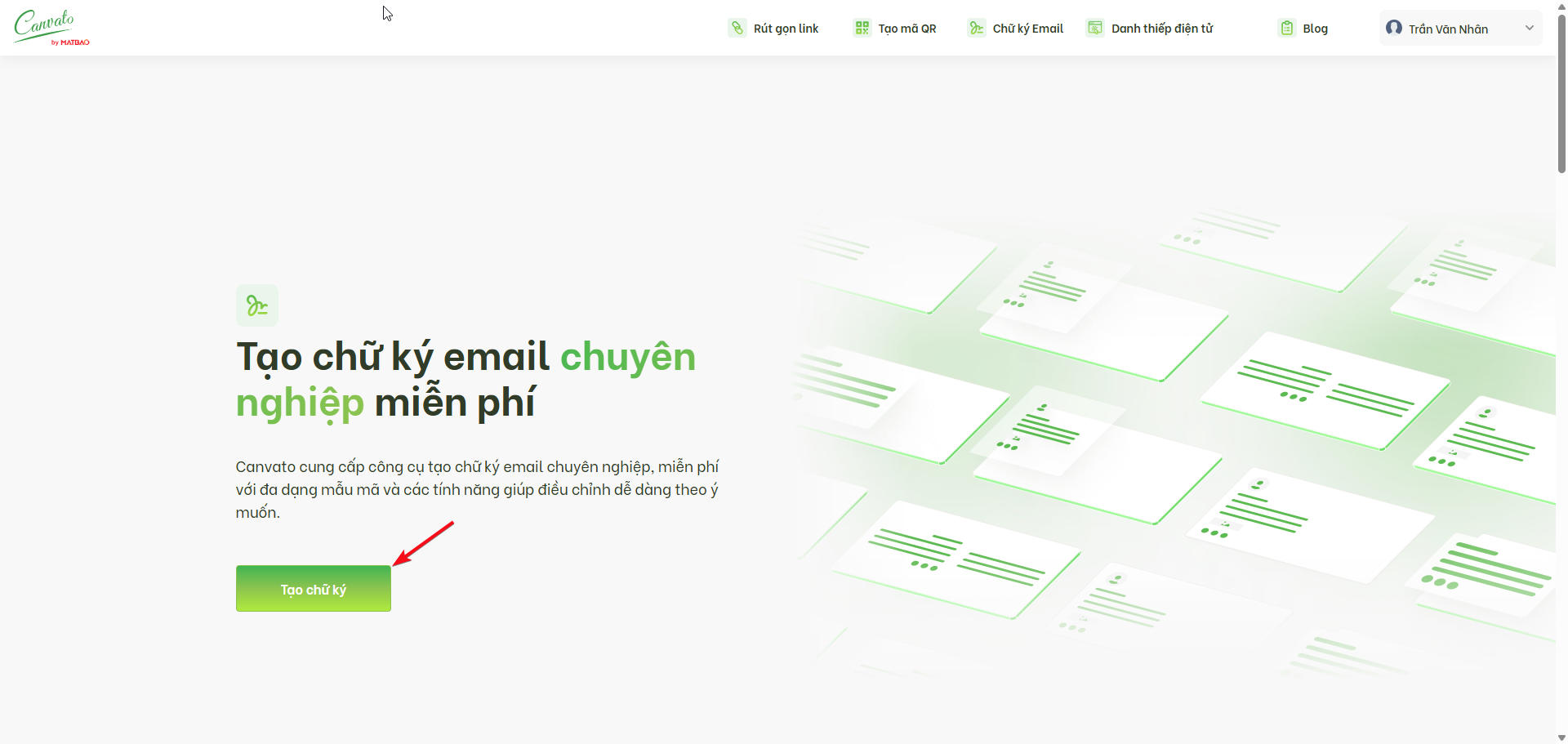 - Đầu tiên để sử dụng dịch vụ này, bạn cần truy cập vào địa chỉ https://canvato.net/ . Bạn có thể tự đăng ký tài khoản hoặc đăng nhập theo tài khoản của Google,