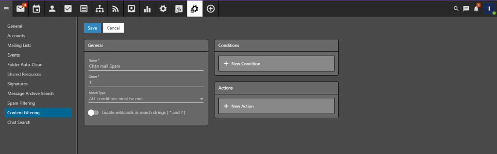 Điều quan trọng cần lưu ý là tìm kiếm lưu trữ thư chỉ có sẵn cho Quản trị viên tên miền khi các quy tắc được thiết lập riêng cho các miền cụ thể của họ. Nếu lưu trữ được thiết lập cho “tất cả các miền” trên máy chủ, thì chỉ Quản trị viên hệ thống mới có thể tìm kiếm kho lưu trữ thư. Do đó, nếu Quản trị viên tên miền cần quyền truy cập vào kho lưu trữ email cho tên miền “example.com”, thì quy tắc Lưu trữ thư cụ thể dành cho example.com cần được quản trị viên hệ thống đặt.