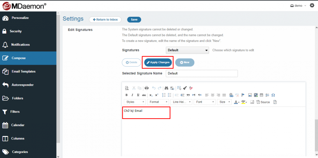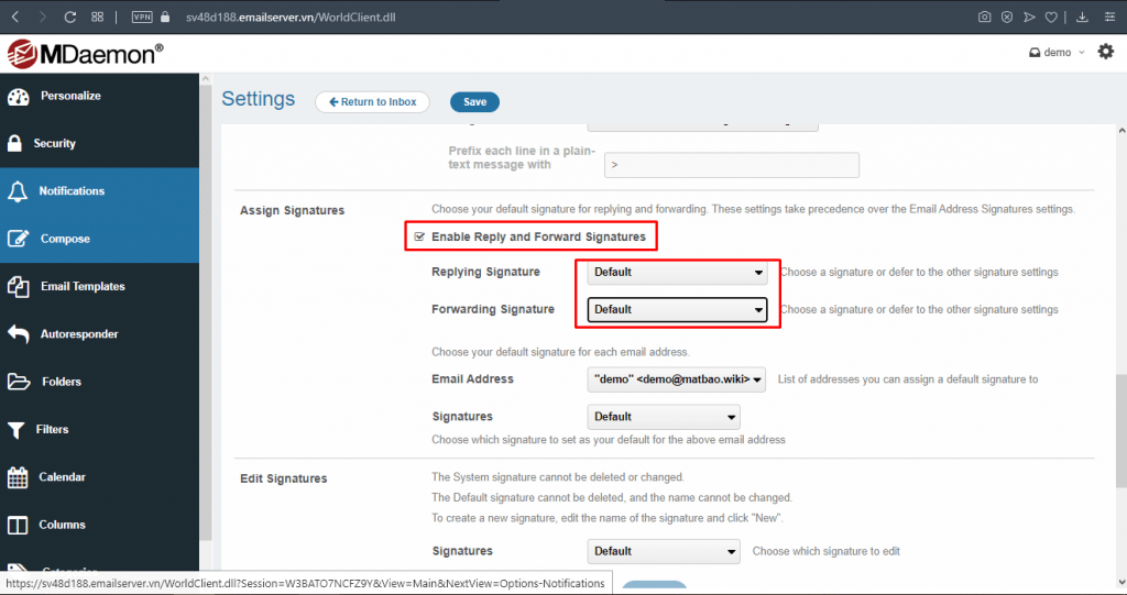 Bước 4: Bạn cấu hình lại khi Reply – Trả lời hoặc Foward – chuyển tiếp đều có chữ ký của bạn đã khởi tạo