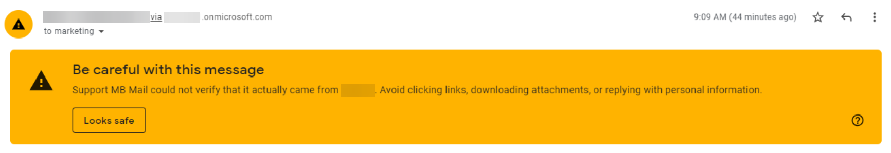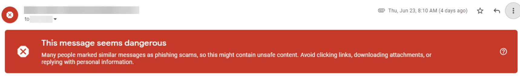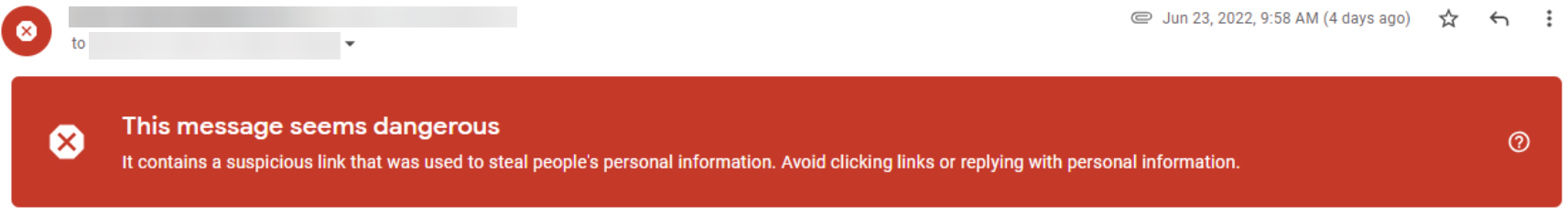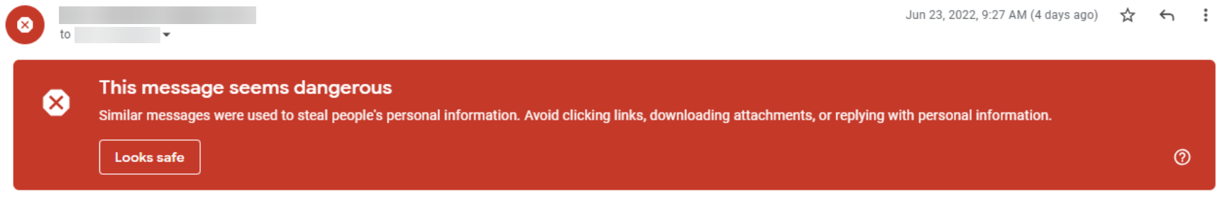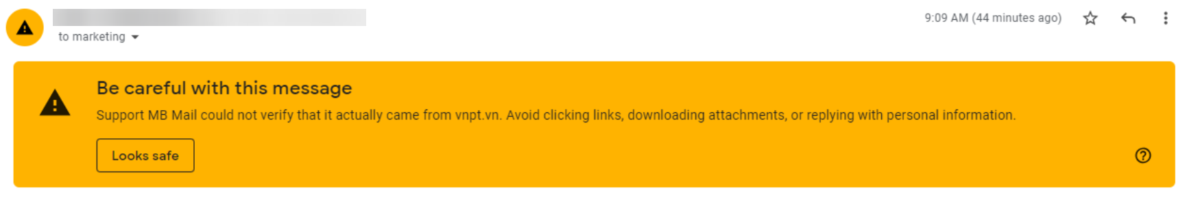 Những lá mail bị vi phạm chính sách mail Phishing này là những mail mà bộ lọc Google không xác định được bản ghi khai báo DMARC của địa chỉ người gửi. Nghi ngờ địa chỉ mail người gửi là mail giả mạo.