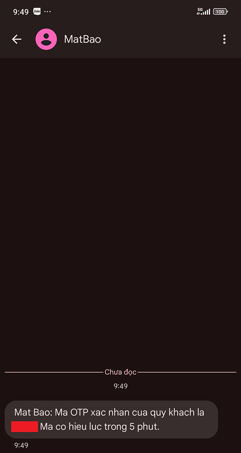 - Phương án SMS OTP, bạn sẽ nhận được tin nhắn từ người gửi MATBAO